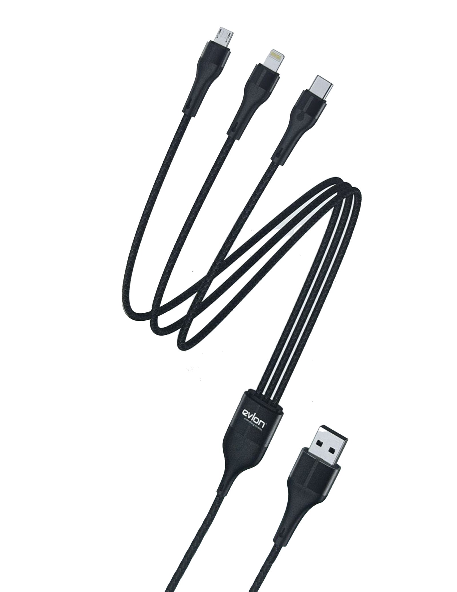 Experience powerful and efficient charging with the EVLON EC4X300 3-in-1 fast charging cable. Designed to simplify your tech life, it supports Lightning, Type-C, and Micro USB devices simultaneously — making it the ultimate all-in-one charging solution. Built with durable braided metal wire and a smart chip for protection, this cable ensures safe and fast charging every time.